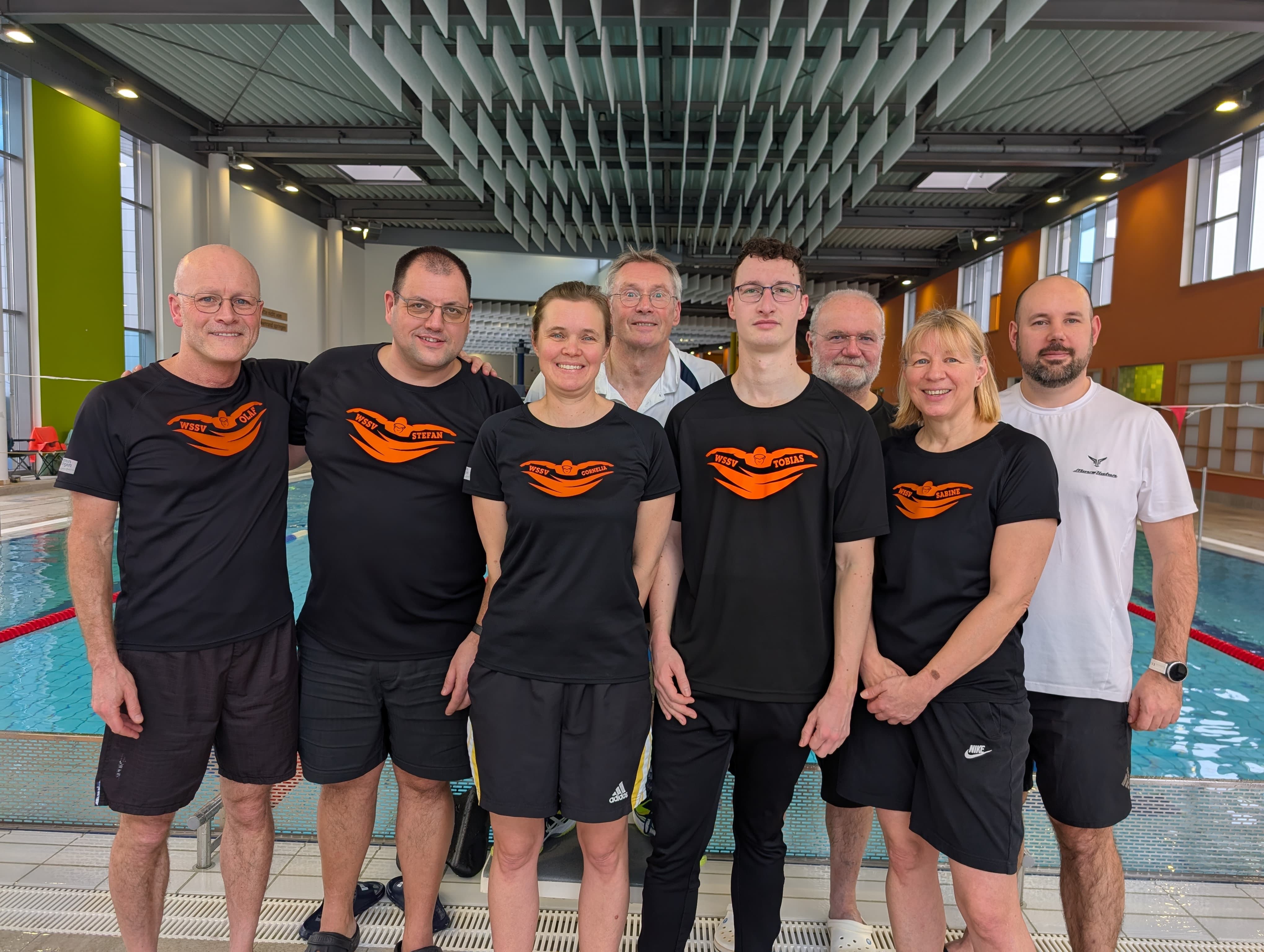 Das WSSV-Schwimmteam mit Cornelia Ennen (Altersklasse 45), Stefan Tramnitzke (AK 45), Sabine Rossmeisl (AK 60) und Uwe Rossmeisl (AK 65), Olaf Amelsberg (AK 55) und Tobias Volk (AK 25) hatte sich viel vorgenommen, sich speziell auf diese Meisterschaft der kurzen Strecken auf der langen Bahn vorbereitet und brachte neun Mal Edelmetall mit nach Hause.