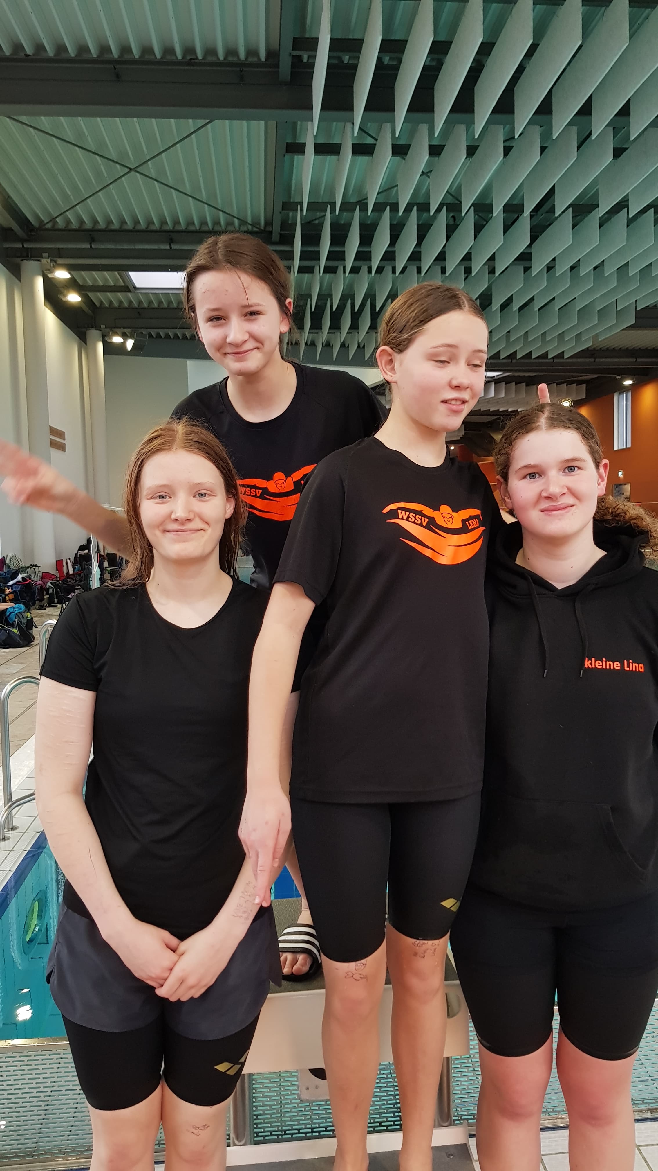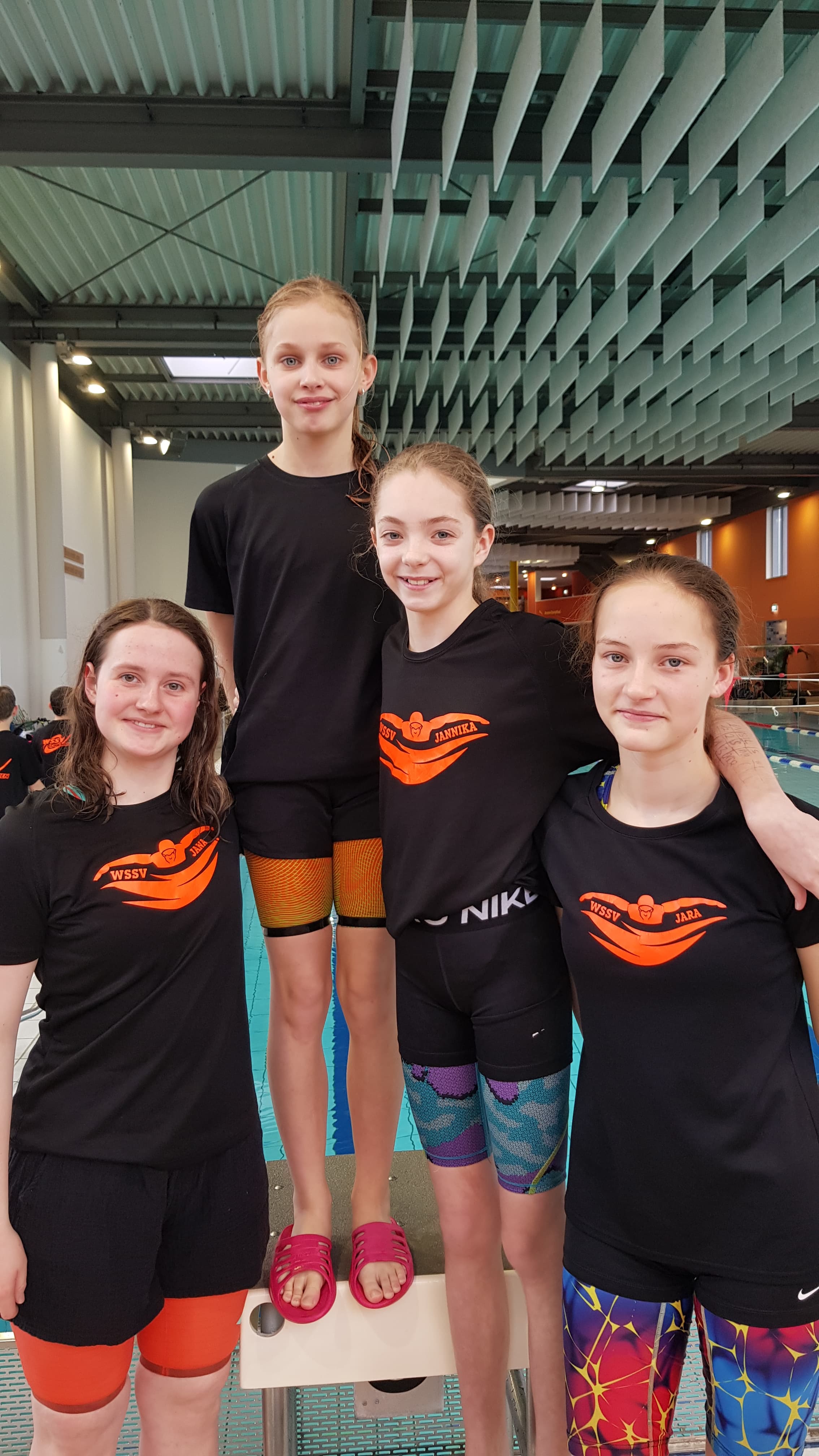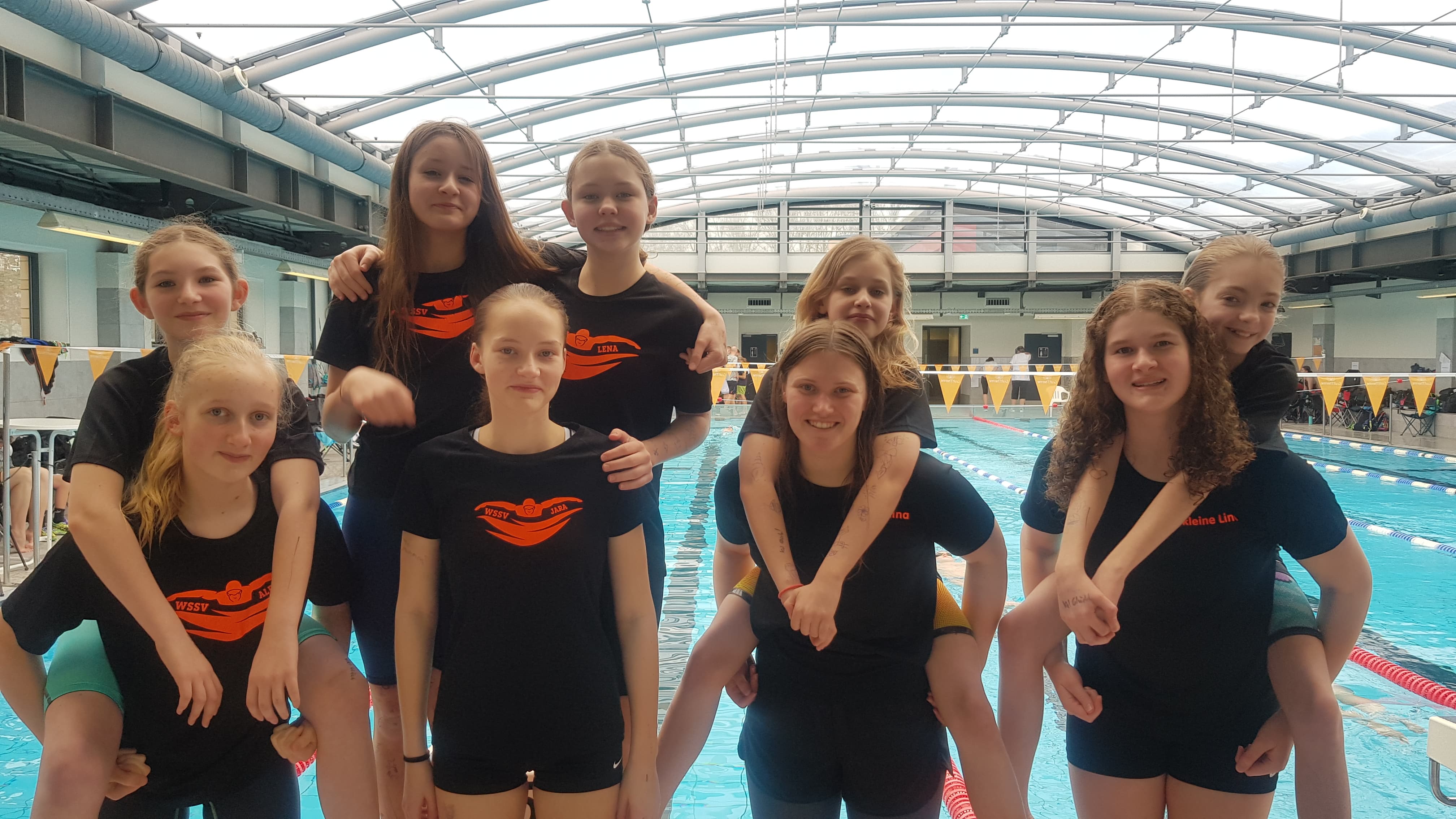 So kämpften Lina Tönnies (2012), Maelle-Tamea Latour, Alena Niehuß, Amelie Oldenettel, Jara Sofie Reiners (alle 2013), Jannika Hutter, Lena Berlinska (beide 2014), Emma Elisabeth Woogk (2015) und Lina Thomßen (2001) bei insgesamt 34 Starts um jeden Punkt und schwammen dabei nicht selten eher ungewohnte Strecken. Amelie Oldenettel sammelte mit 1398 Punkten die meisten Punkte für das WSSV-Team, zudem schlug sie bei jedem ihrer fünf Starts in neuem persönlichen Rekord an und unterbot dabei jedes Mal die geforderten Pflichtzeiten für die anstehenden Bezirksmeisterschaften im März. Auch Lina Tönnies leistete mit 1348 erschwommenen Punkten einen großen Beitrag zum Gesamtergebnis und das, obwohl sie über eher herausfordernde Strecken wie die 200 Meter Schmetterling an den Start ging. Lena Berlinska konnte mit ihren vier Starts ebenfalls über 1200 Punkte sammeln, besonders stark war dabei ihr Start über die 50 Meter Brust, bei dem sie trotz ihres jungen Alters als Dritte im gesamten Schwimmbezirk anschlug. Trainerin Lina Thomßen, für die die eher unbeliebten Strecken übrig blieben, holte ähnlich viele Punkte und auch Jannika Hutter und Emma Elisabeth Woogk konnten trotz ihres jungen Alters je ca 800 Punkte erschwimmen. Eine besonders herausragende Leistung zeigte Maelle-Tamea Latour, die nicht nur drei neue persönliche Rekorde bei drei Starts sammelte, sondern zudem über die 400 Meter Lagen an den Start ging, die spontan neu besetzt werden mussten. Obwohl noch nie über die deutlich kürzeren 200 Meter Lagen gestartet, meisterte sie die anspruchsvollste Strecke im Schwimmsport souverän und in hervorragender Zeit. Alena Niehuß startete ebenfalls kurzfristig über mehr Strecken als geplant, auch sie schwamm dabei schnelle Zeiten und sammelte so über 500 Punkte. Jara Sofie Reiners erschwamm trotz langer Krankheitspause wichtige Punkte über die 100 Meter Freistil, sodass am Ende mit 8183 Punkten über 1000 Punkte mehr als im Vorjahr zusammenkamen.