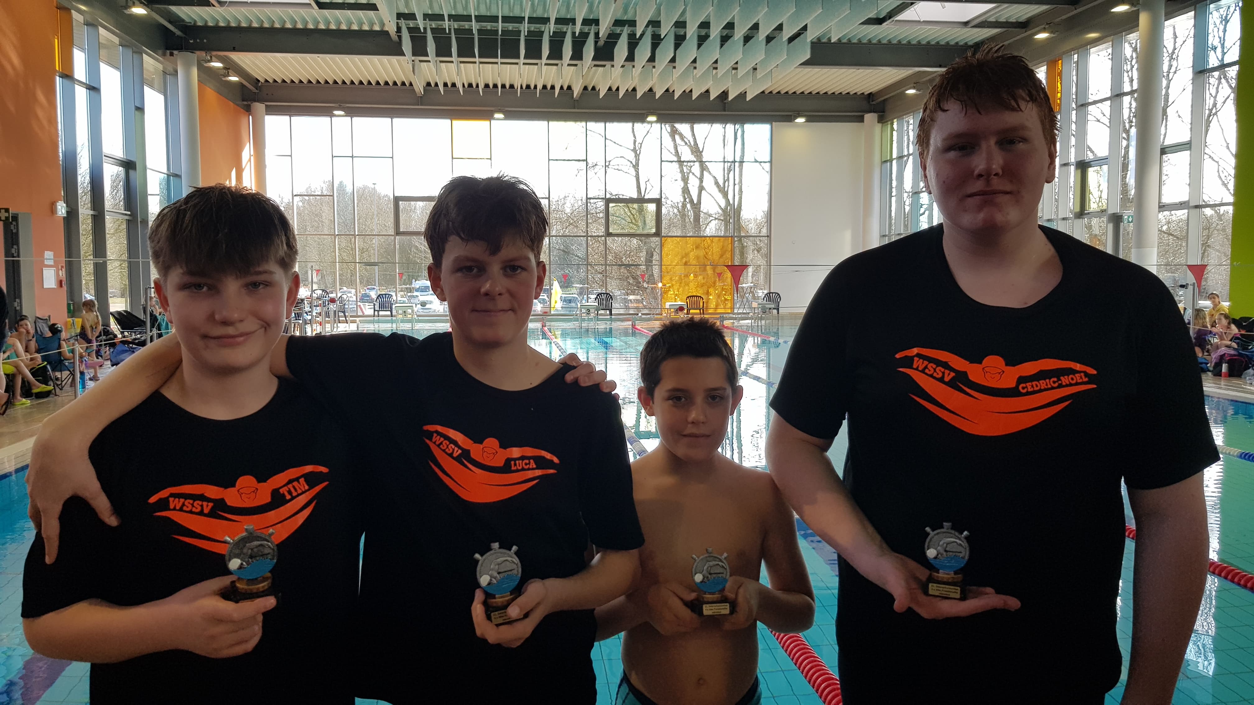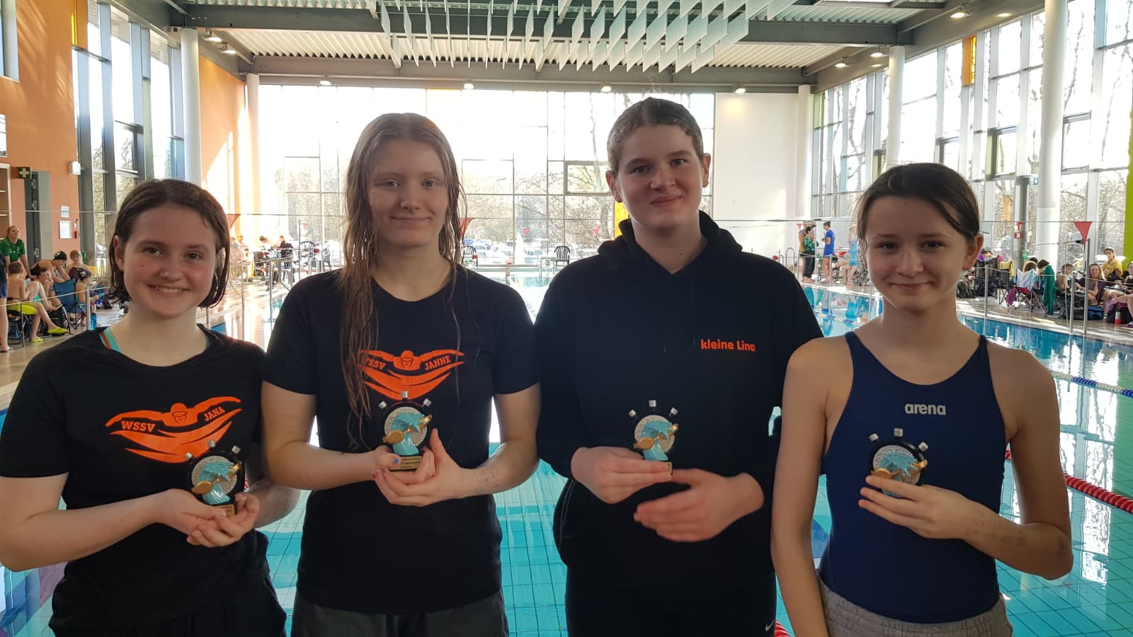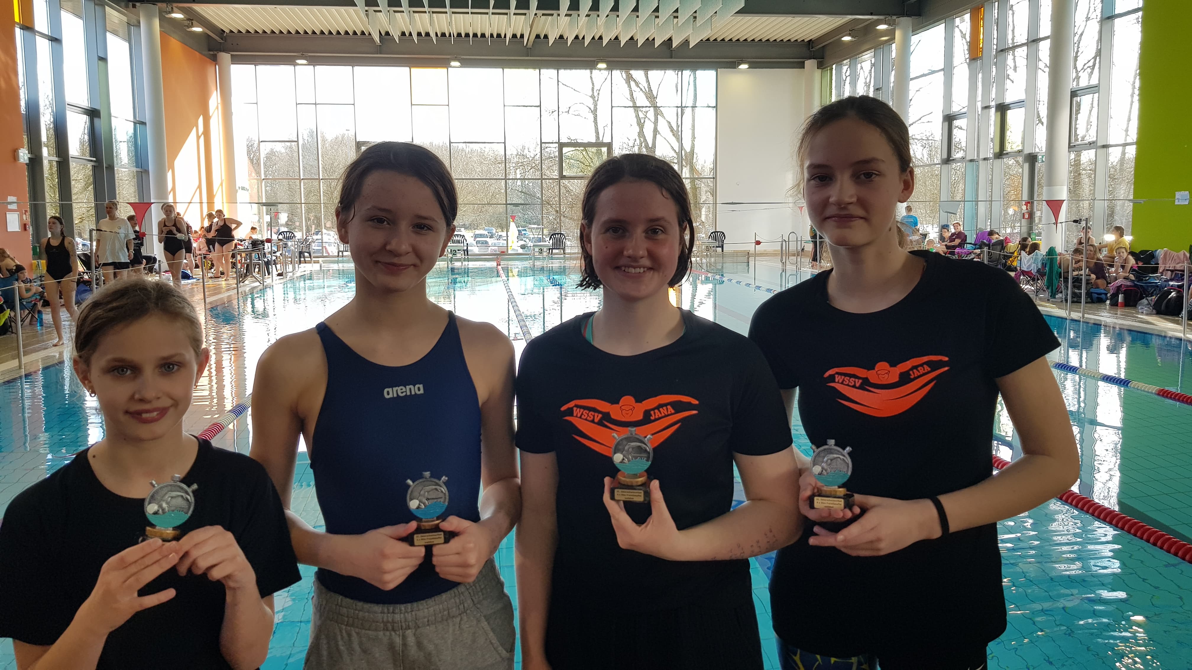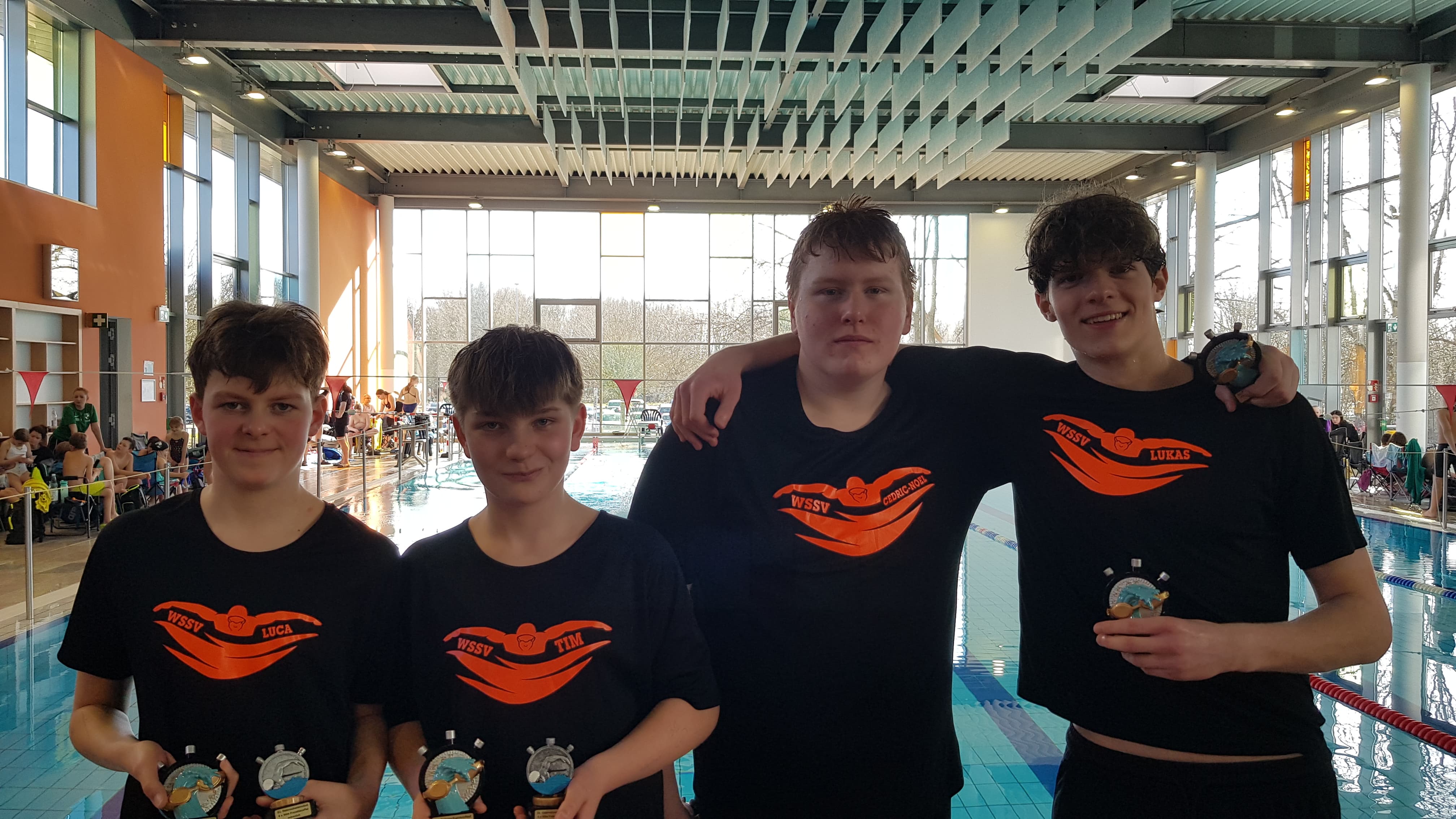 Auch in den Staffelwettkämpfen lieferte die WSSV-Mannschaft Erfolge, in der 4x200 Freistil Staffel holten Woogk, Niehuß, Engel und Oldenettel Bronze, was ihnen J. Thomßen, J. Hutter, Oldenettel und Tönnies über die 4x100 Freistil gleich taten. Über die 4x100 Lagen Staffeln verpassten J. Thomßen, Berlinska, Engel und Niehuß sowie Schröter, Kallweit, Angermeyer, und Dumalksi den Sprung aufs Treppchen, lieferten aber schnelle Zeiten. Das Trainerteam bestehend aus Lina und Garnet Thomßen zeigte sich mehr als erfreut über die Ergebnisse des Wettkampfwochenendes, insbesondere aufgrund vieler Qualifikationen für die Meisterschaften auf Landesebene sowie Angermeyers Qualifikation für die Norddeutschen Meisterschaften.
