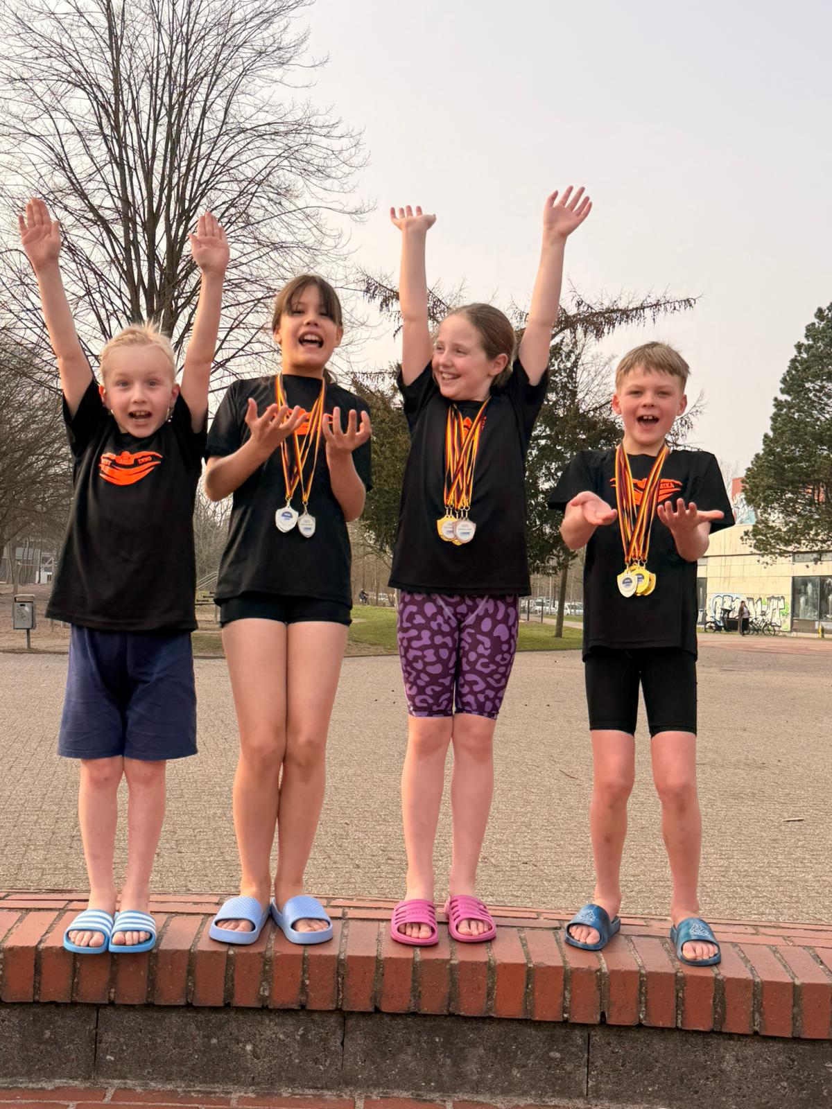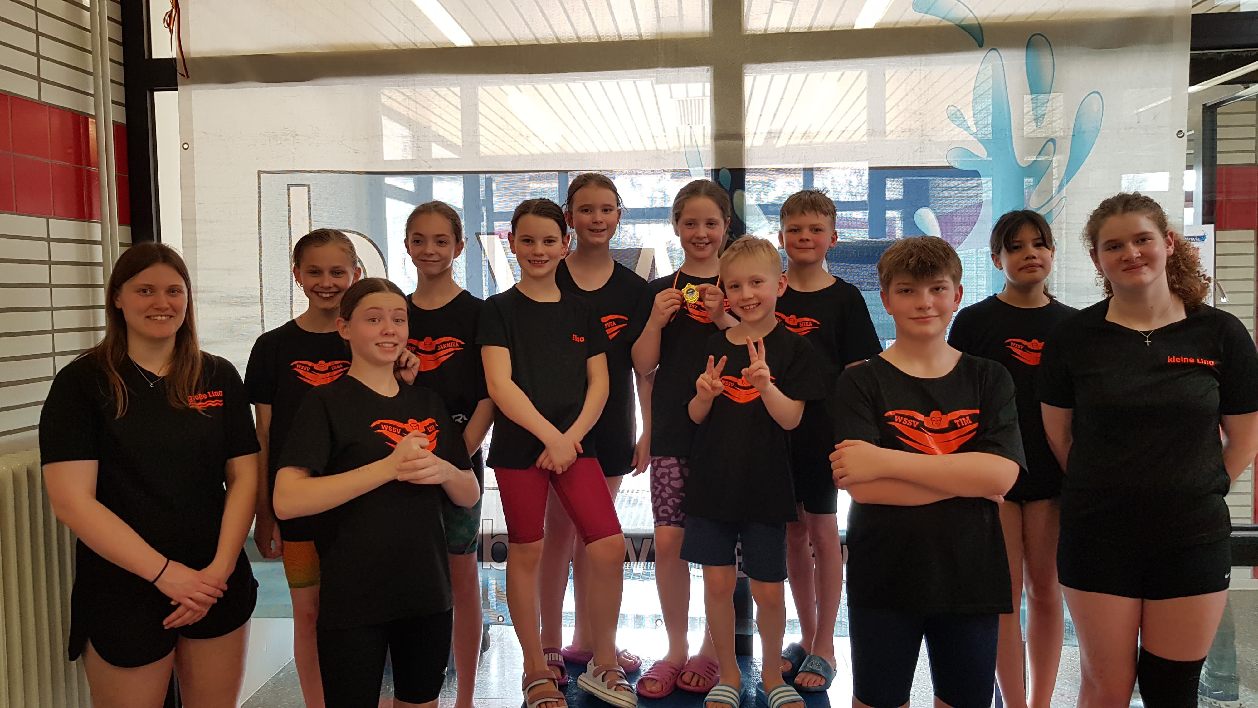 Für einen erfolgreichen Start in den Wettkampf sorgten die Jüngsten im „kindgerechten“ Abschnitt über die 25 Meter-Strecken. Hier gewannen Jette Kallweit (Jahrgang 2019) und Tessa Hutter (2020) die Jahrgangswertungen in Freistil und Rücken, zudem schwammen sie auch über die 25 Meter Freistil-Beine unter die Top Drei ihres Jahrgangs. Über Letztere holte Bruno Tönnies (2019) sich den Sieg in der Jahrgangswertung, während er über die beiden anderen Strecken jeweils auf Rang Zwei schwamm. Annemarie Bär (2019) feierte ein erfolgreiches Wettkampfdebut und konnte sowohl in Freistil als auch über die Freistil-Beine erfolgreich umsetzen, was im Training gelernt wurde.