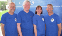 Fünf Aktive der Schwimmabteilung nahmen mit einem Staffel- und 16 Einzelstarts an den 46. Deutschen Schwimm-Meisterschaften der Masters teil. Trotz des großen Leistungsvermögens der angetretenen Besten der Besten aus allen 16 Bundesländern gelang es den Wilhelmshavenern, sich größtenteils im vorderen Mittelfeld zu behaupten. Allerdings galt auch schon mal das Motto vom "Dabei sein ist alles". Mit zwei fünften Plätzen über 50 m (0:32,60) und 100 m Rücken (1:13,37) schnitt Sascha Sauer, AK (Altersklasse) 35, am besten ab. Über 200 m Freistil wurde er in 2:23,44 Achter und in 1:03,18 über 100 m Freistil Zehnter. Alexander Sonneborns (AK 25) bestes Ergebnis war der sechste Platz über 100 m Rücken (1:10,99). Über 200 m Freistil kam er in 2:16,05 auf Platz 16 und über 100 m Freistil in 1:00,36 auf Platz 18. Anna Camenzind (AK 30) belegte über 200 m Freistil Platz acht (2:40,51) und über 50 m Freistil Platz 17 (0:31,87). Bernhard Abbass (AK 70) erreichte über 50 m Rücken Platz neun (0:48,58) und über 50 m Brust Platz elf (0:45,26). Dagmar Norden belegte einen neunten (100 m Brust in 1:38,37) und einen 19. Platz (50 m Freistil in 0:35,52). Die 4x100 m Freistilstaffel mixed der AK 120-159 (Gesamtalter der Starter), geschwommen von Camenzind, Norden, Sauer, Sonneborn, wurde in 4:36,39 Neunte. An dieser Veranstaltung nahmen 1142 Aktive aus 296 Vereinen im Alter von 20 bis 92 Jahren teil. Als Folge dessen war das Bad völlig überfüllt. Die Schränke reichten nicht für alle Teilnehmer und viele mussten mit einem Aufenthaltsplatz im Untergeschoss vorliebnehmen. Wegen einer dem Ausrichter nicht rechtzeitig bekanntgewordenen Großveranstaltung stand auch der als Parkplatz vorgesehene Schützenplatz nicht zur Verfügung, so dass die Parkplatzsuche für viele zum Geduldsspiel wurde. An drei Tagen wurden im Stadionbad von Hannover auf acht 50 m-Bahnen 3384 Einzel- und 545 Staffelstarts absolviert. Die Wilhelmshavener zeigten sich sehr beeindruckt von dem ausgesprochen hohen Leistungsniveau dieser Veranstaltung. Dieses zeigte sich vor allem darin, dass nicht weniger als 48 Deutsche Mastersrekorde und 15 Europa-Mastersrekorde geschwommen wurden. Höhepunkt war jedoch eindeutig der Masters-Weltrekord über 4x100 m Freistil der AK 100-119 (4:11,02) von vier jungen Frauen der SG Ruhr. - Foto (von links): Sascha Sauer, Anna Camenzind, Alexander Sonneborn, Dagmar Norden, Bernhard Abbass.