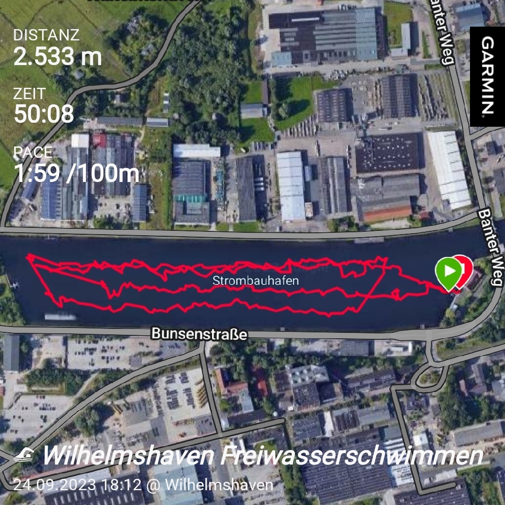 Die diesjährige Freiwassersaison neigt sich langsam zu Ende und es ist Zeit für einen kleinen Rückblick: Nach dem Start Mitte Mai nutzten insgesamt 13 Aktive unser neues, erst seit 2023 bestehendes Trainingsangebot im Kanalhafen und legten bei den 23 Terminen über 50 km zurück! Dabei erwies sich die Schwimmstrecke als wahrer Glücksfall: Mit 625 m Länge beträgt sie exakt ein Viertel von 2,5 km, also der offiziellen Wettkampf-Distanz. Außerdem war die Wassertemperatur mit bis zu 24 Grad meist ausreichend hoch für Schwimmanzug bzw. -hose und sank erst Mitte September in den "Neopren-Bereich". Quallen waren nur ein einziges Mal (Anfang Juli) wirklich ein Problem und auch sonst waren Lebewesen oder Unrat kein Thema - solange man sich mit dem Umstand vertraut macht, sie im überwiegend trüben Brackwasser ohnehin kaum erkennen zu können - inklusive Seehunden, die sich dort von Zeit zu Zeit blicken lassen (sollen)...